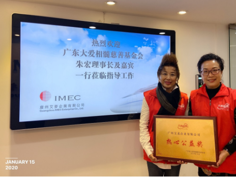 2020年1月15日下午,朱宏理事長率廣東省大愛相髓慈善基金會一行六人蒞臨公司總部指導工作,并頒發(fā)廣州艾麥企業(yè)有限公司“熱心公益獎”,執(zhí)行董事張小沫代表公司接受了該榮譽獎牌。